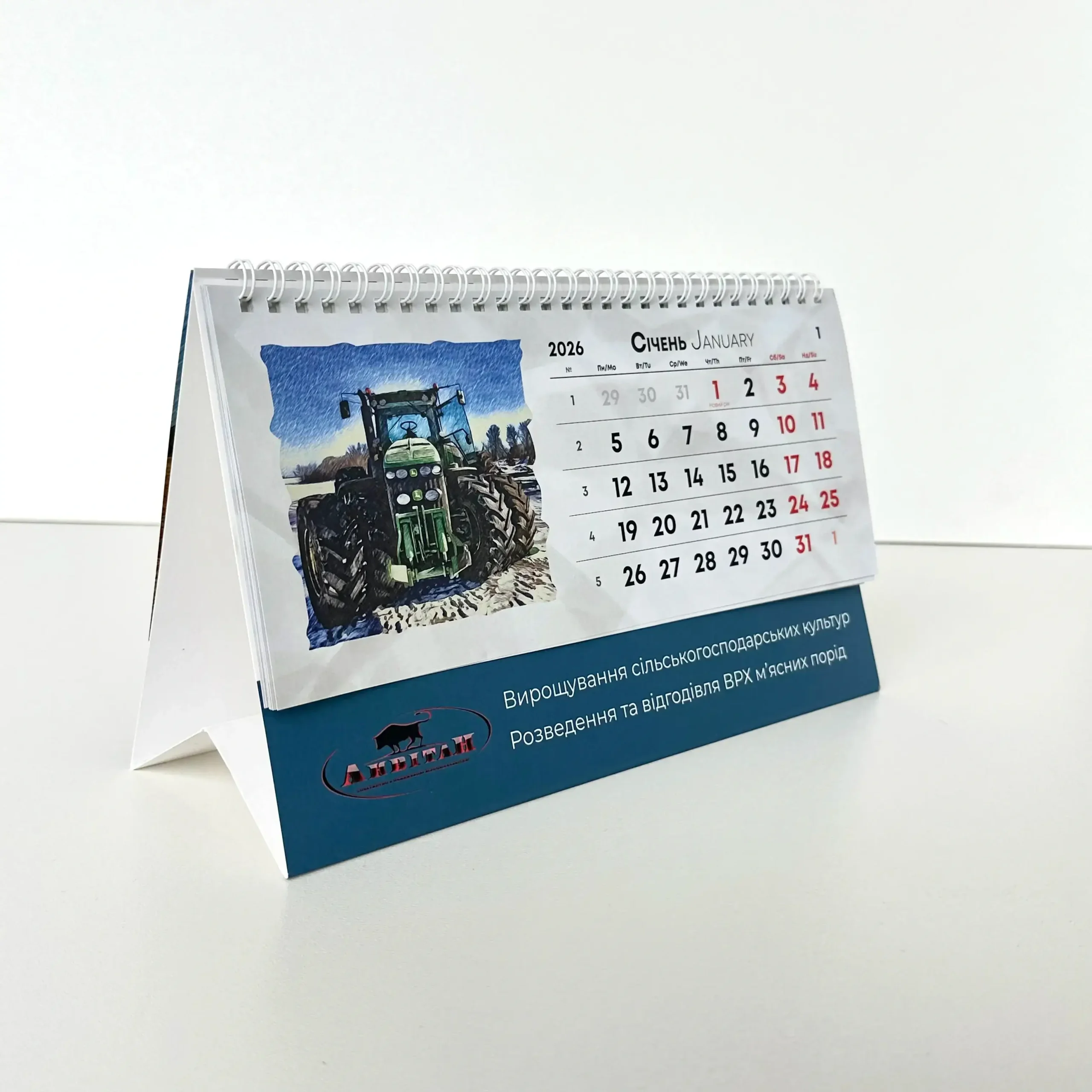 - Постійна присутність бренду – календар стоїть на столі весь рік, нагадуючи про вашу компанію щодня.